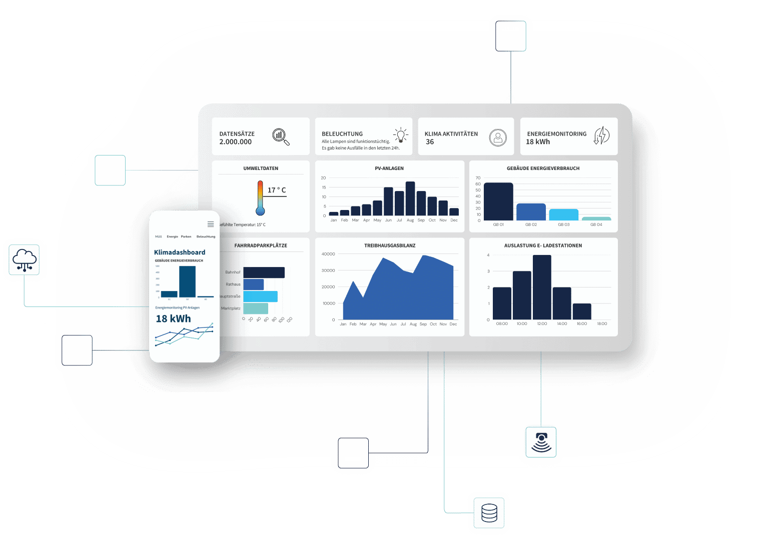 Unser Bürgerdashboard macht kommunale Daten sichtbar, verständlich und in Echtzeit zugänglich. Es stärkt die Kommunikation zwischen Verwaltung und Bürgerschaft und schafft Vertrauen in Entscheidungen. Ob Verkehr, Umwelt oder Energie – alle Themen werden anschaulich visualisiert und fördern so digitale Teilhabe sowie ein datenbasiertes Miteinander. Das Dashboard ist barrierefrei nutzbar und lässt sich individuell an die Bedürfnisse jeder Kommune anpassen.