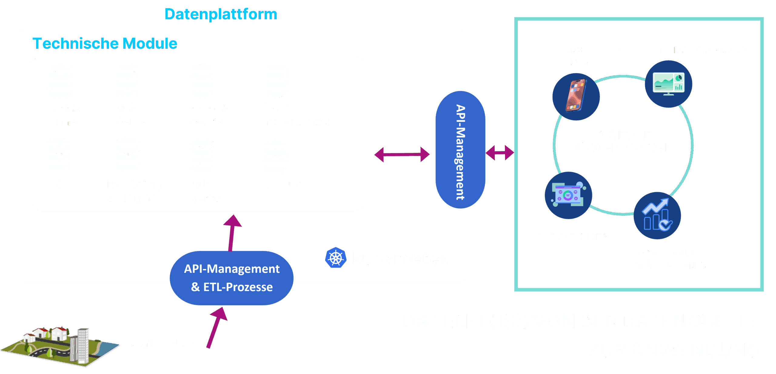 Unsere Urbane Datenplattform ist eine erprobte Lösung zur Erfassung, Integration und Visualisierung städtischer Daten in Echtzeit – offen, standardkonform und modular erweiterbar. Sie basiert auf der DIN SPEC 91357 (Referenzarchitekturmodell Urbane Datenplattform) und berücksichtigt weitere marktübliche Standards für optimale Interoperabilität. Damit lösen wir das Problem isolierter Datensilos und ermöglichen eine nahtlose, ressortübergreifende Nutzung urbaner Daten. Unsere Open-Source-basierte Plattform unterstützt datenbasierte Entscheidungen, steigert die Transparenz und verbessert die Effizienz kommunaler Prozesse. Sie ist bereits erfolgreich im Einsatz und bildet das digitale Fundament für smarte und zukunftsfähige Städte sowie Regionen.